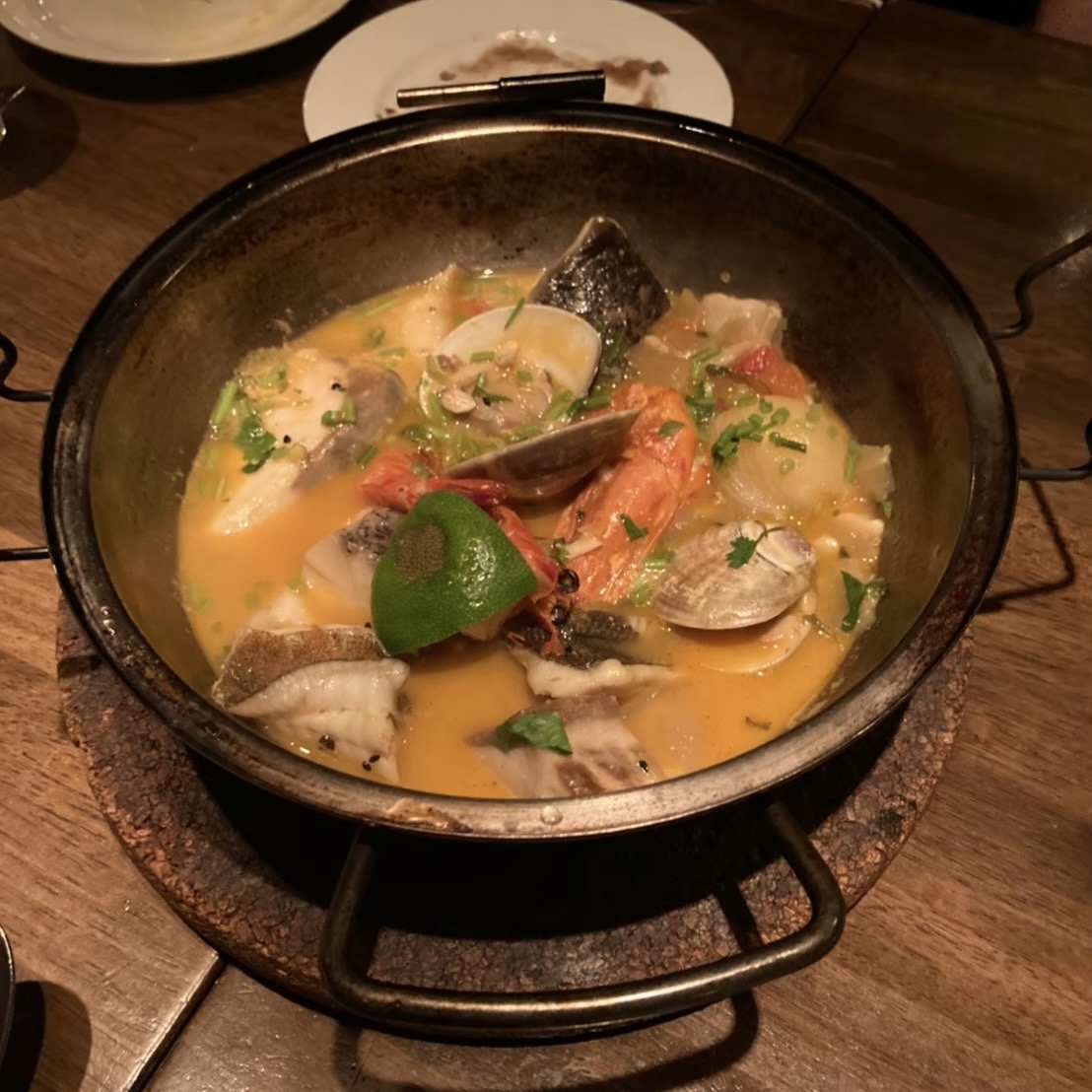 カタプラーナという鍋で煮込んだ、魚介のスープ。えびや貝、鱈などを、オリーブオイルやワインを使って煮込むようです。とある料理サイトでは、「大西洋が詰まったスープ」と素敵な表現で紹介されていました。